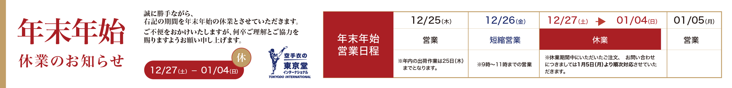 ※12月26日(金)は店舗はお休みです。ご試着等一切お受けできませんご了承ください。 おすすめ情報 東京堂空手衣シリーズ phitenコラボレーション空手衣 ¥16,500(本体 ¥15,000) ¥24,200(本体 ¥22,000) ¥21,010(本体 ¥19,100) ¥21,010(本体 ¥19,100) ¥22,110(本体 ¥20,100) ¥22,110(本体 ¥20,100) おすすめ空手衣・帯・防具 ¥18,700(本体 ¥17,000) ¥11,000(本体 ¥10,000) ¥24,200(本体 ¥22,000) ¥9,460(本体 ¥8,600) ¥1,430(本体 ¥1,300) ¥3,300(本体 ¥3,000) ¥6,600(本体 ¥6,000) ¥14,850(本体 ¥13,500) ¥15,400(本体 ¥14,000) ¥22,110(本体 ¥20,100) ¥7,480(本体 ¥6,800) ¥9,350(本体 ¥8,500) 商品カテゴリ 空手衣商品別 接触冷感空手衣 クラシック(KA9/KD11/KW11/K10) ATHLETE(アスリート) EXCELENT(エクセレント) S-1(エスワン) 拳魂 KENKON TS-1(トップスピード) Ultra Laser (ウルトラレーザー) SP-1000/SAMURAI(侍) PHITEN(ファイテン) KB(黒道衣/カラー道衣) 空手衣目的別 初心者 組手/形用 組手用 形用 師範/上級者用 帯・ネーム刺繍 帯 ネーム・マーク刺繍 防具・その他 試合用防具・安全具 キックミット・鍛錬具 サポーター 試合用品 フルコンタクト・日本拳法 フルコンタクト空手 フルコン用防具 日本拳法 流派別商品 JKA日本空手協会グッズ 糸東会グッズ 和道会グッズ 剛柔会グッズ グッズ・その他 オリジナルグッズ Phiten(ファイテン)グッズ 健康関連グッズ 本・雑誌・ビデオ・DVD ギフトラッピング セール お得マルシェ アウトレットコーナー カタログ請求 大会販売グッズ